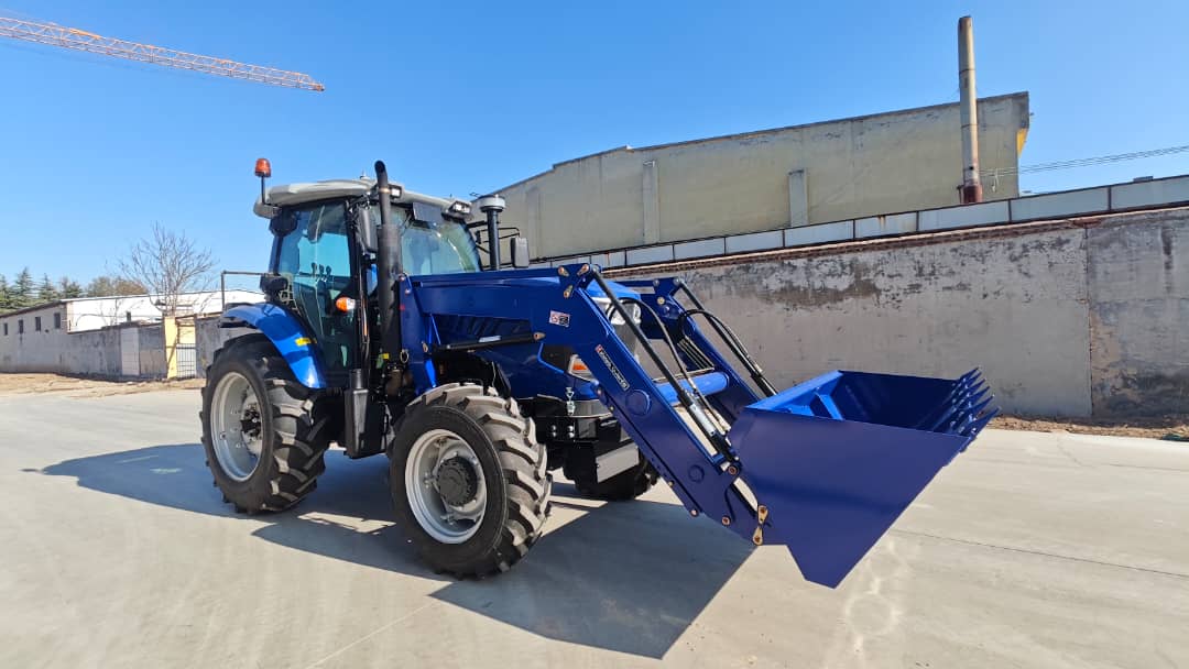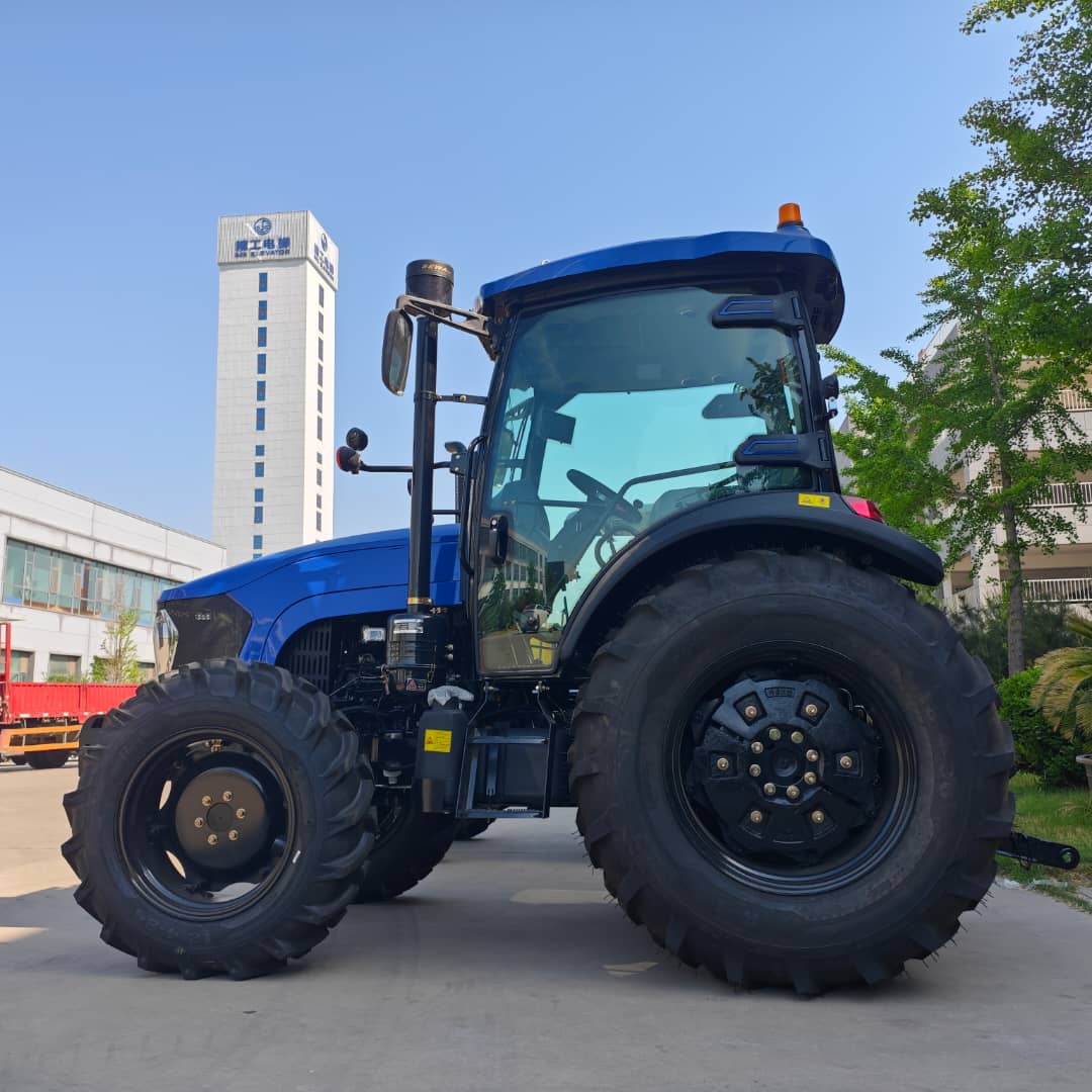 Tracteur agricole à roues polyvalent et haut de gamme, de 100 à 150 chevaux. Structure compacte, maniabilité optimale, traction puissante et entretien simplifié. Équipé d'un moteur diesel YTO ou Weichai. Boîte de vitesses 16F+8R pour une grande variété de vitesses de travail.