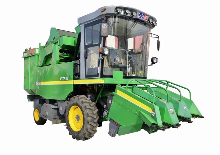 Moissonneuse automotrice de maïs compacte et efficace, conçue pour les exploitations moyennes. Récolte rapide sur 2 rangs avec système de cueillette à plateau et grande garde au sol.